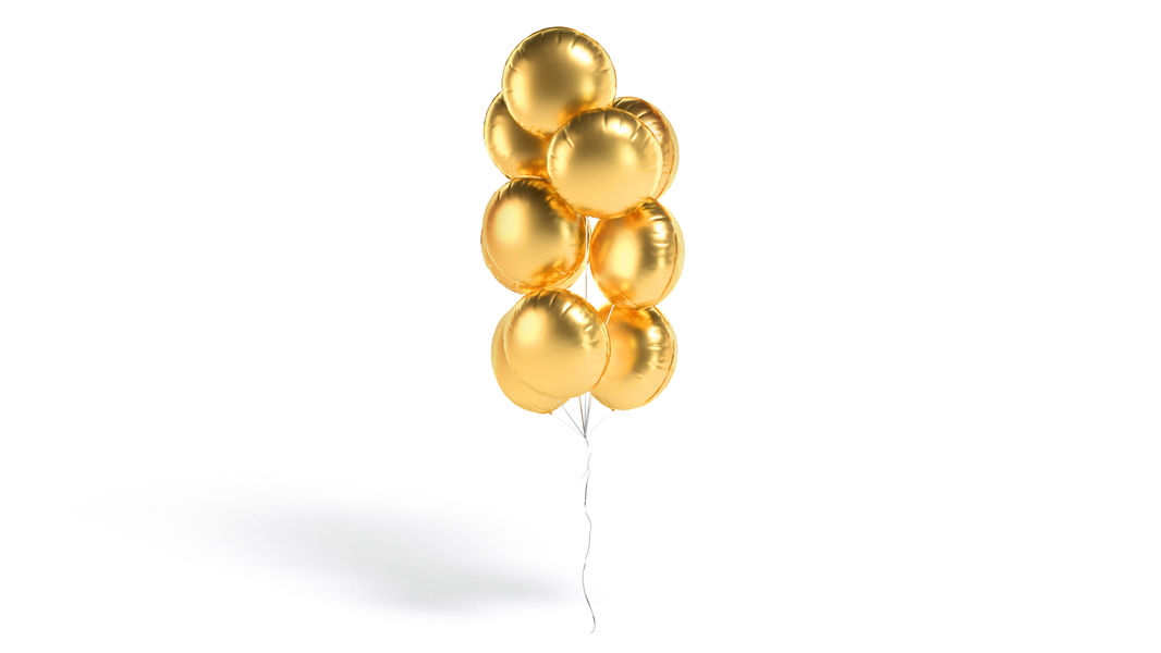 Gold Round Balloon Bouquet - helium foil balls bunch 3D Model