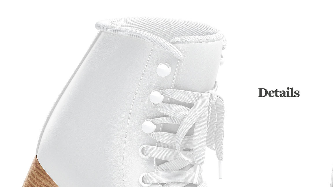 Show off your winter patterns and designs for one skate or an entire pair at once. Choose a color for every element from the lining to the laces and add the ice arena backdrop included in the product.