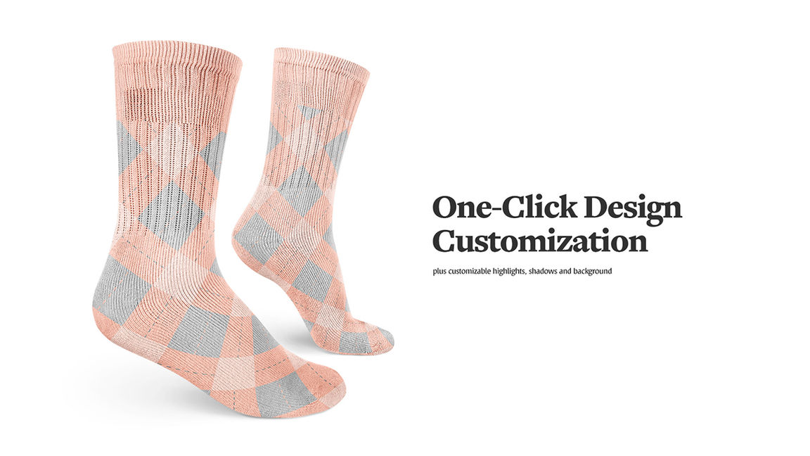 Personalize your mockup by adjusting color and design, controlling levels of glare and backlight reflections of your socks.