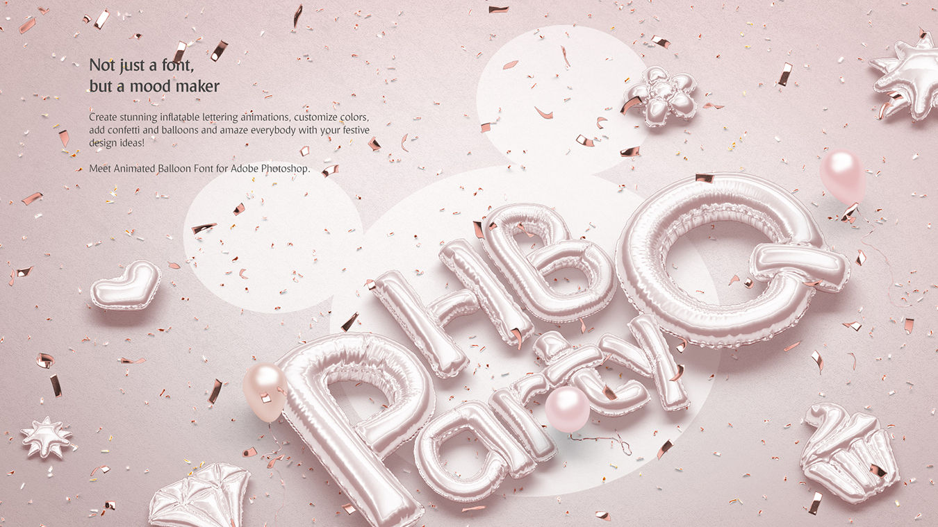 Create stunning inflatable lettering animations, customize colors, add confetti and balloons and amaze everybody with you festive design ideas!