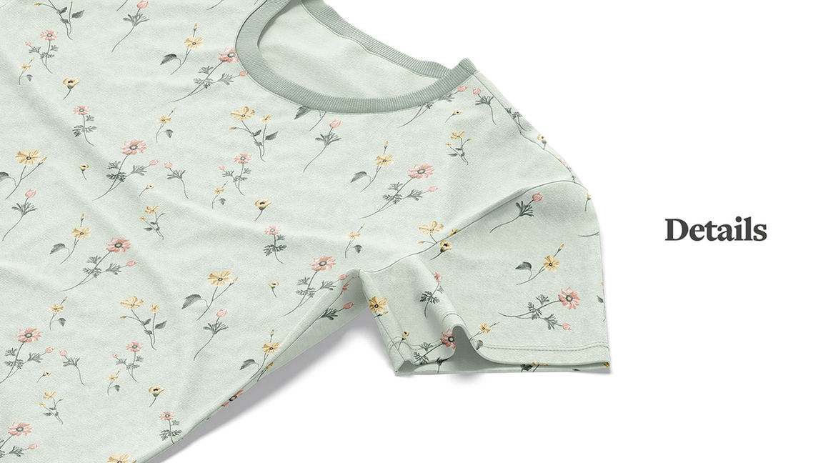 Show off your pattern or design on a flat t-shirt with a folded corner. Customize the design for the sleeves and body of the t-shirt separately, and change the color of the collar and stitching.
