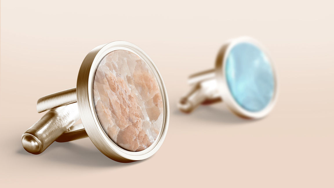 Easily add a design or initials separately to each cufflink, choose the metal shade and set lighting effects.