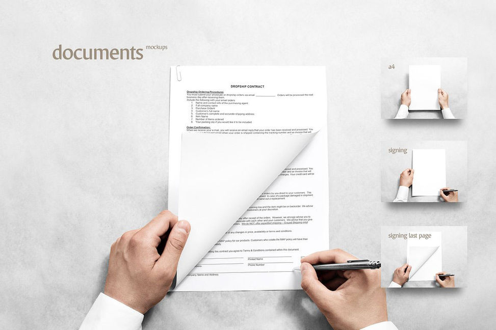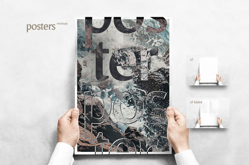 High-resolution photos of hand holding different presentation paper, retouched and turned into a customizable design mockup.