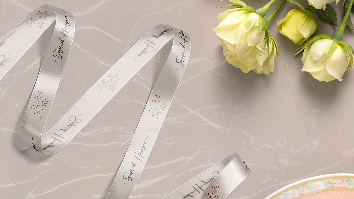 A versatile curling ribbon mockup for your elegant designs. Choose organza or satin texture, control the intensity of highlights, add a background to create a realistic scene.